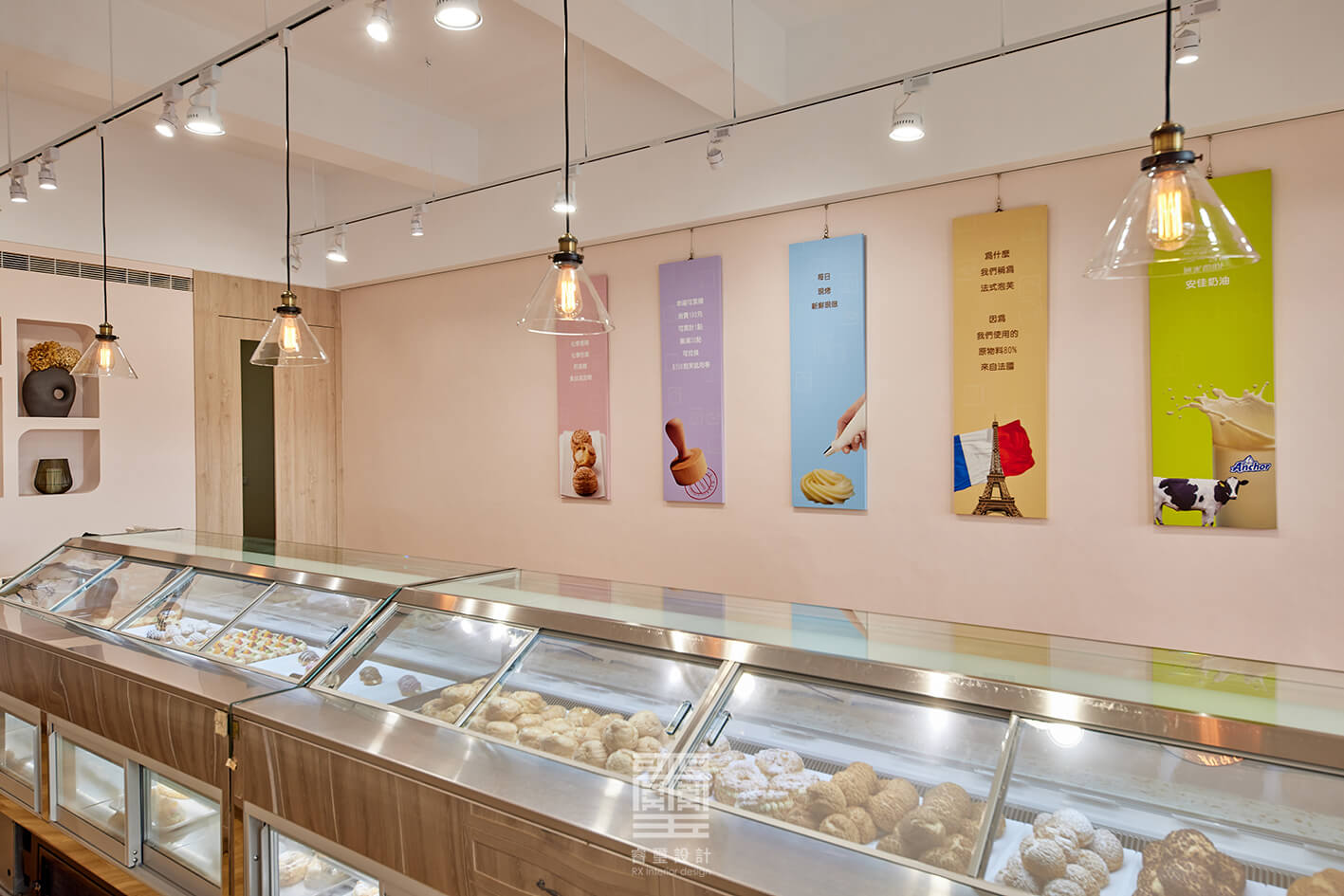 坐落位置|台中市 南屯區 設計風格|現代風 contemporary 案件性質|泡芙店 空間坪數|20坪 主要建材|Naxhorn石塑地板、NLiving自然居塗料、Agglotech義大利水磨石檯面、進口窯變磁磚、日本期貨壁布、特殊異型切割鏡 設計團隊|睿璽設計 攝影團隊|福克斯攝影 官方網站|https://www.ruixiid.com